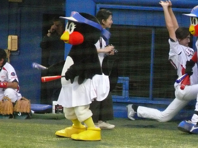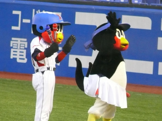 つばみちゃん、初めて生で見ました。 燕太郎も、初めて見ました。ちょいと衝撃。 神宮はナゴドみたいにスタンドと客席にネットがあるんですが、ネット越しグリーティングのつばみちゃん。 スカートがめくれているのはデフォルトですか。 三羽揃い踏み。 正面?撮影。 ドアラ以上にシュールだよね・・・。 子供たちのパレードと共に行進が始まっています。どうしても踊る大捜査線しか浮かばない。 神宮に通える距離に住んでいたらこのお方と仲良くなりたい・・・。 つばみちゃんもかわいいです。派手な動きとかはないんですが、いるだけでかわいい。 つばせんせは貫禄ありますね。 つばめさん特集続きます。