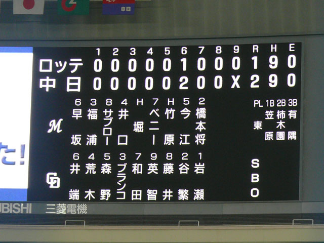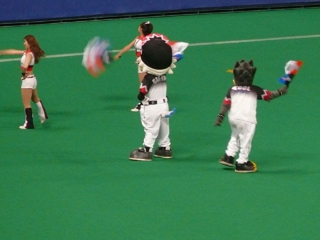 今年もナゴヤに来ましたマーくん。 ビジターだろうと長時間お客さんのお相手してくれてます! ローアングル攻め(違 こちらがCOOLさんの全貌。 でも勝負事は負けられません。 プライベートでズーちゃんが来ていました! ご自慢のアクセサリー。 ロッテの応援はいつも凄いよねー・・・。オープン戦ですら凄いと思う。シーズン中はそれはもう。 試合はブランコさんのHRで決まりました。 この後飲みにでもいったんでしょうか。