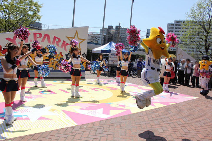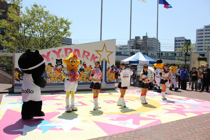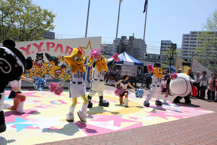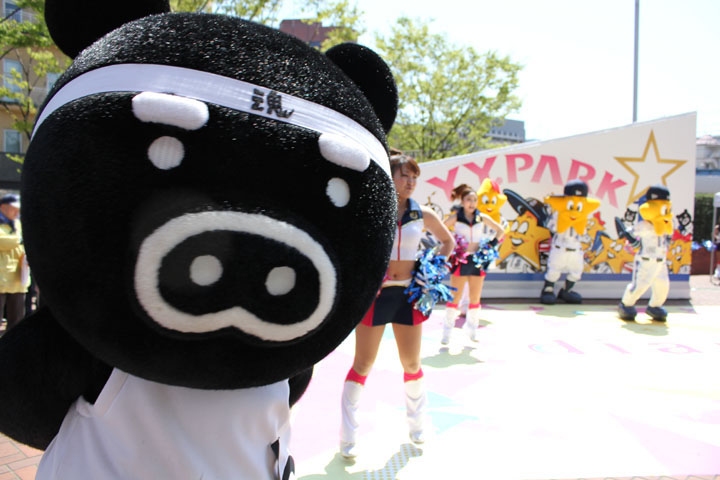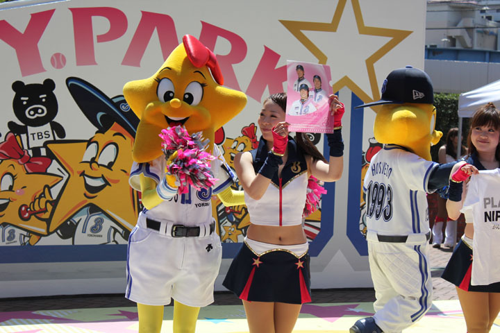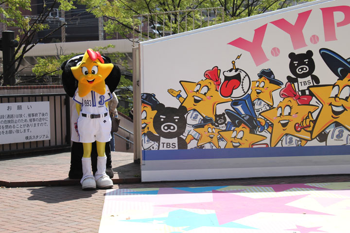 足早に、ベイマスコットをぺたぺたと。 ほしがまわる。 4/12 ハマスタ ブーブさん比率高い。