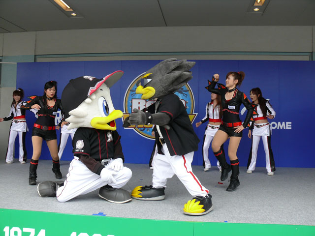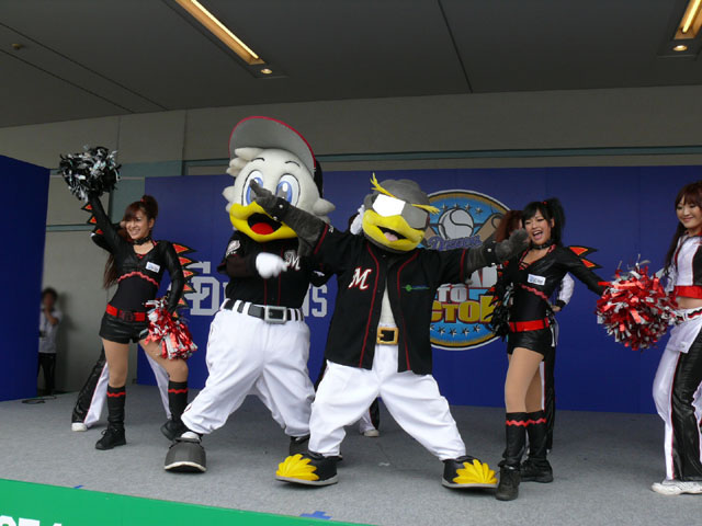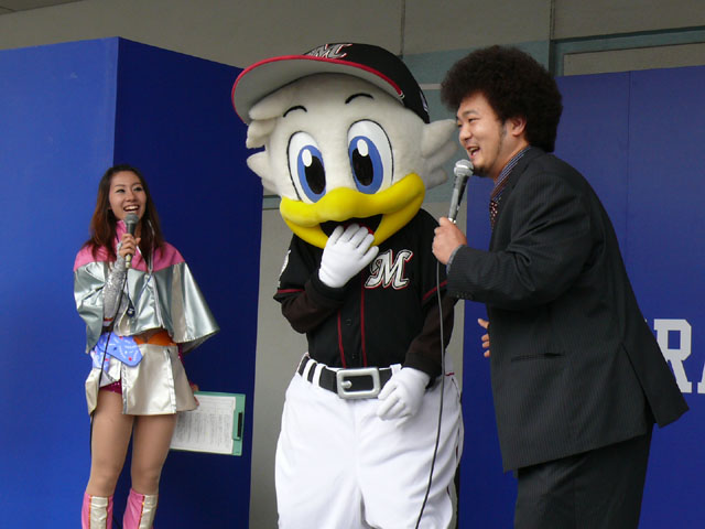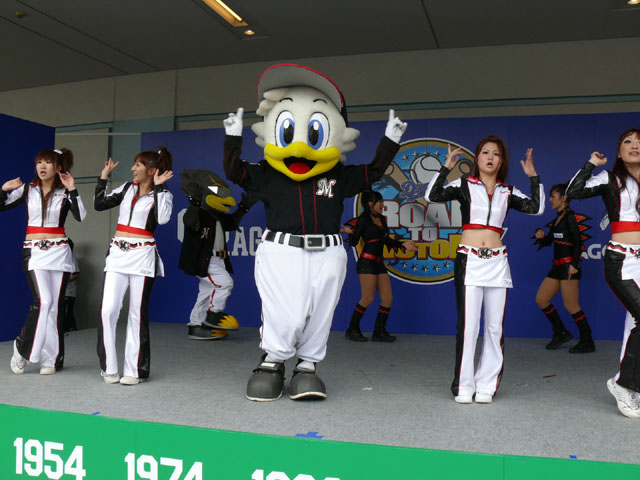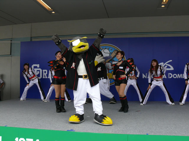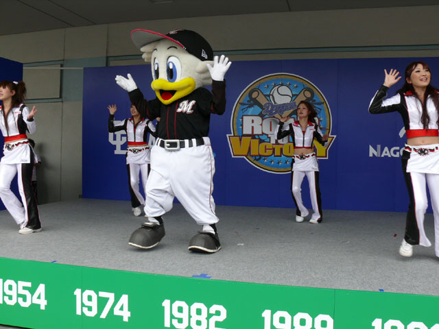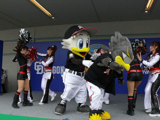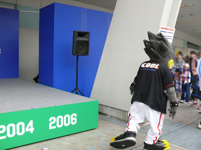 交流戦勝ち越しめでたい!オリックスにはなんとかイーブン。あとはSB戦ですか・・・。 この日はD-STAGEが盛りだくさんだから一番長い連載になりそうだ・・・。 このマリーンズマスコットの前の通常D-STAGEの写真もたくさんあるし。UP諦めるしかないか? COOLご満悦の中に今度の視線は・・・。 6/10D-STAGE。またドアラシャオロンパオロンはいません。でもなおちゃんといまちゃんがいますw 本日3度目の更新。