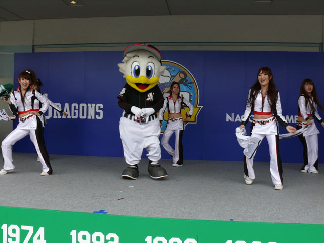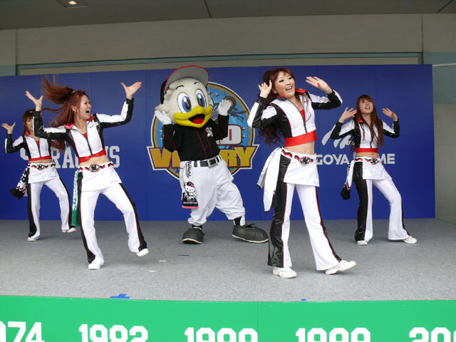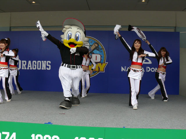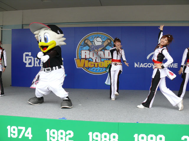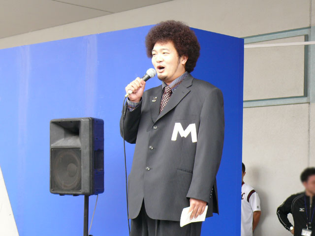 司会をやられていたのはジントシオさんですね。マリーンズファンなら知らない人はいないという超有名人です。千葉マリンのステージで見ました。 名古屋にまで来てたとはびっくり。 COOL、昔はぐるぐる眼鏡かけてたらしいですね。6/22に千葉マリンでやる川崎復活イベントでまたかけてくれないかな?