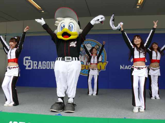 千葉ロッテマリーンズのマーくんでしょう! 今日はマーくんとM☆Splash!!の画像ばかりで、ちょこっとCOOL。(動画はありません) ドアラ・シャオロン・パオロンの画像は一切ないです。 6/10のD-STAGE。 下にもたくさん更新しているのでお見逃しのないように~。