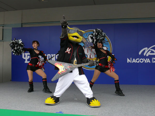 マーくんを追いやります! COOLオンステージ! 前のマーくんのときもそうでしたが、COOLにも声がありますw 決めポーズの最中でもやっぱりサングラスの奥にあの目がw 「でもマリーンズのメインマスコットはボクだもんね!」 「オレが踊っているときになんてことを~!」 「今はオレのステージなんだー!」 そして再びCOOLオンステージ・・ってエアギターかいっ! 短いですが・・ごめんなさいラピュタ観たいんで続きはまた後日~。
