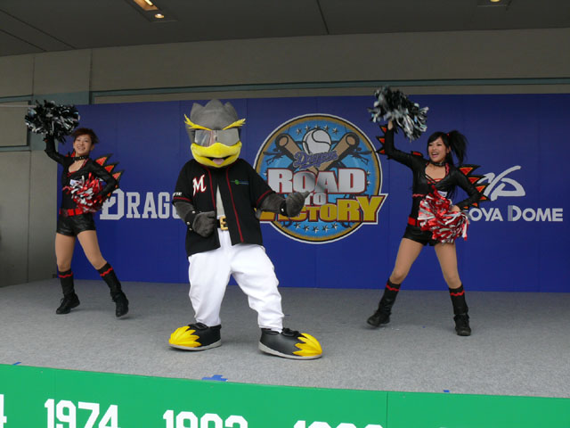 この写真を撮ろうとしたところで、くまさんからの怒涛の電話攻撃 音が大きいから何も聞こえないと思い後ろへいくものの、やっぱり何も聞こえなかった(笑) もう1度ステージ前に戻るのは必死だったなぁ 人ごみを掻き分ける掻き分ける掻き分ける・・・ 雨のせいもあったけどあそこまでぎっしり詰まって身動きとれない状態って始めてだったよね ステージは楽しかったけど疲労困憊でしたよ マスコットに声があるのは、ドラゴンズ慣れ(笑)してると違和感がすごいけど、それはマリスタのステージ演出上しょうがないと思うので許容範囲内ですね