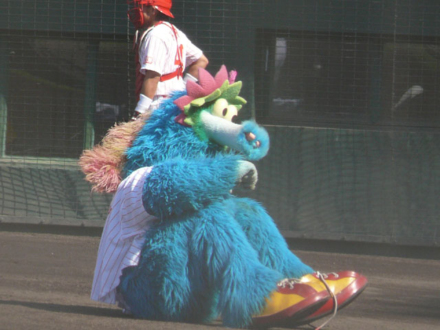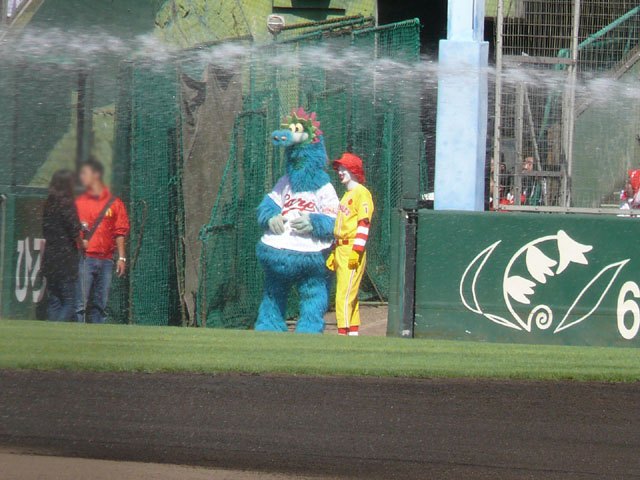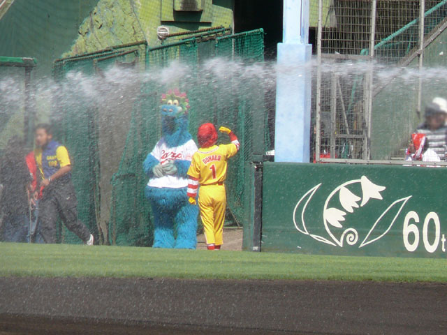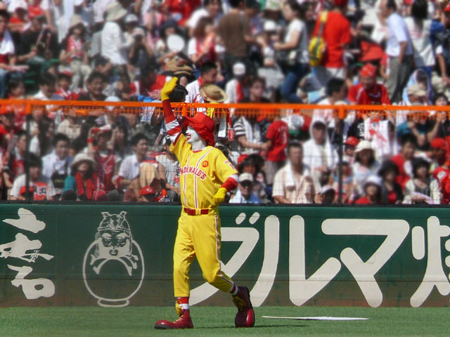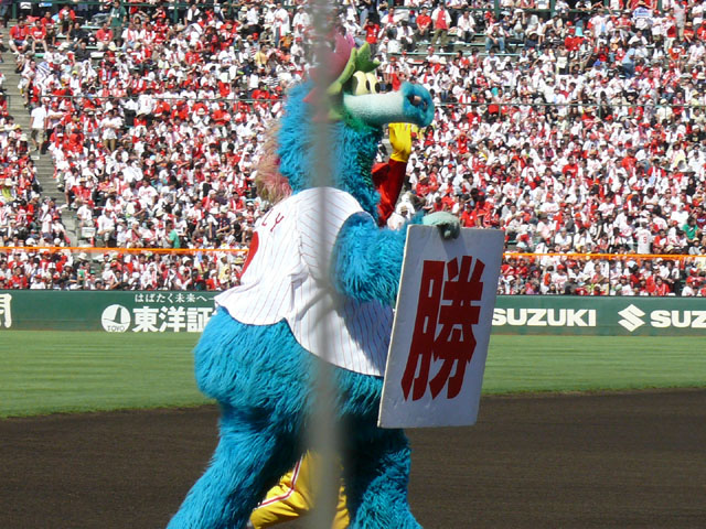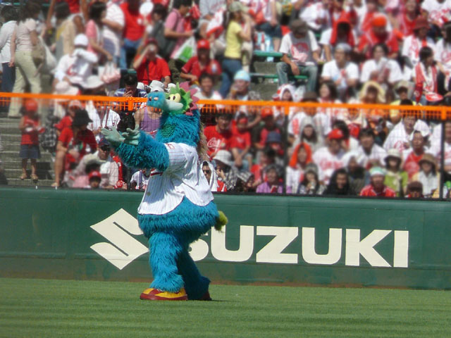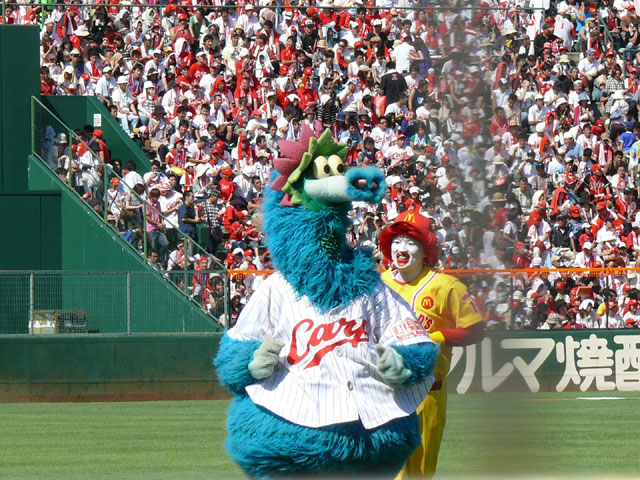 スラ様だけじゃあ・・ない。 ドナルドがいたよ。 数年前ナゴドでマスコット撮影会にいてビックリしたことがありました。しかもしゃべったし。あれ以来ナゴドで見てませんがまた来てください。 スラ様もまたナゴド来て下さい。 広島にはチアガールなどはいないのでスタメン発表後はひたすらスラィリーが動いてます。あとビジョンで「ひ~ろし~ま~カ~ァ~プ~♪」と流して歌ってます。アレ、耳に残る。 グラウンド一周。シュール。 体操座りスラ様。 カープ選手が守備につくときのスラ様を動画で。 スラ様も生で動いているところを見てこそのマスコットだと思うんだなぁ。 ただ、賛否は分かれるところではある・・・。