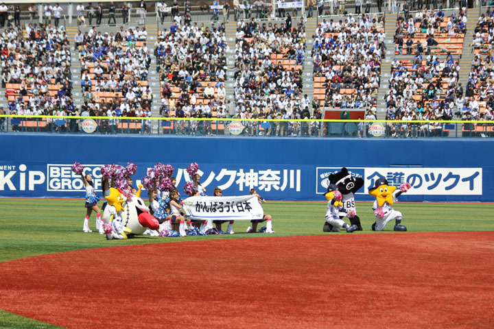 てかもう交流戦。スタートが遅れてるんで、もう?って気がする。 ラインダンス、エキベーさんも参加だぜ。 4/12 ハマスタ ほぼマスコット。