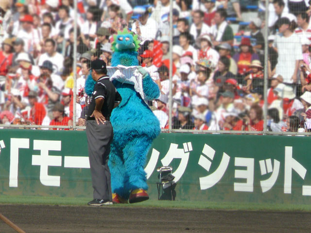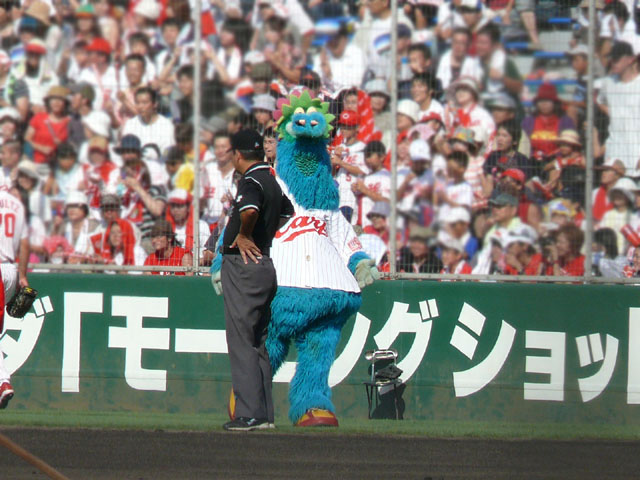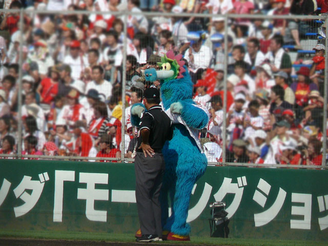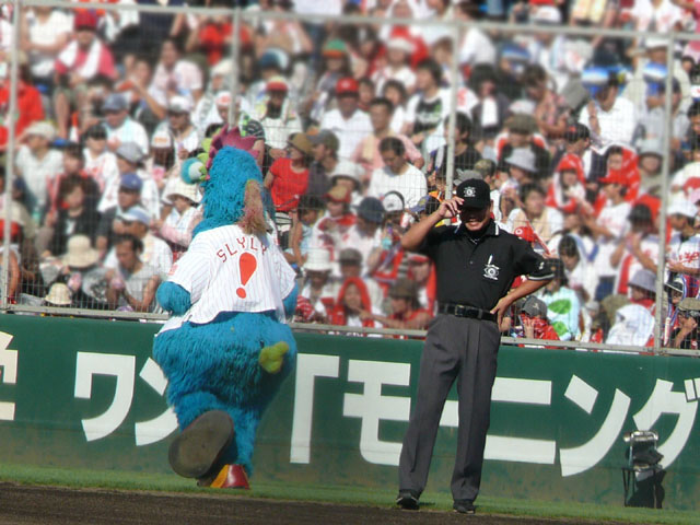 3位という順位は優勝を目指していたチームには物足りない結果なんですが、これで再来年の開幕戦ナゴド開幕権利もげっと。 そしてCS出場権も手に入りまして。ポストシーズンもうちょっとドラファンとして野球楽しめます。ありがとう。 スラ様と1塁審森さん。