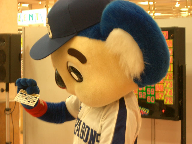 全然当たらないので、ビンゴカードを食べるドアラ。