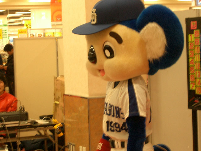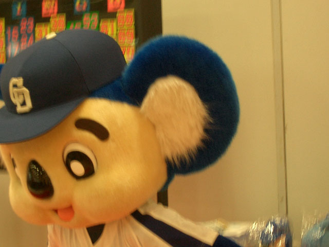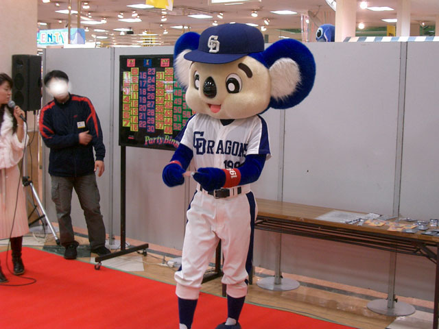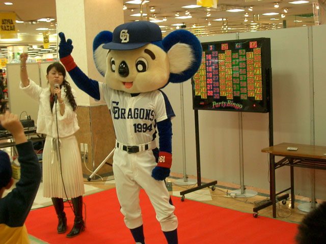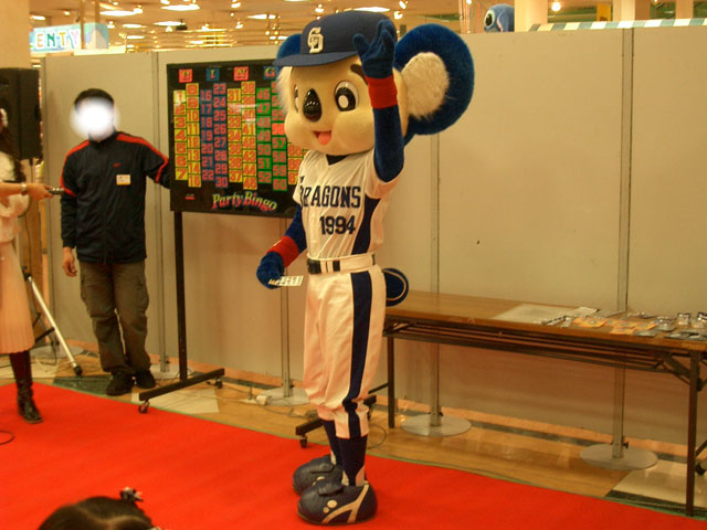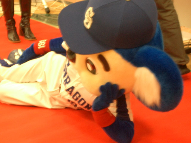 紛れ込んで体操座りドアラ。・・・いや、ドアラアナタはお客さんじゃないでしょ??