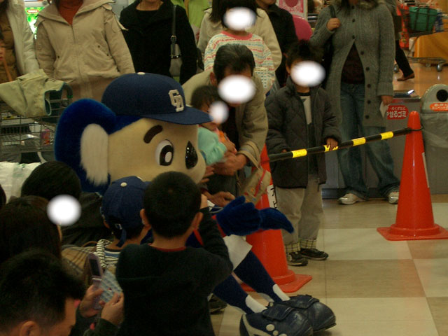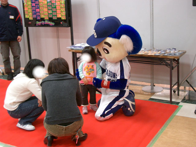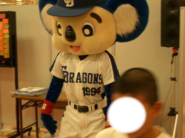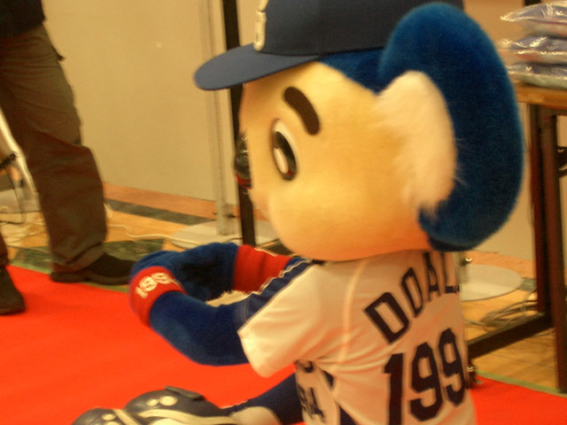 この後、握手会&撮影会ですよ。マコさんは落合監督のサインボール(レプリカ)の横にドアラのサインをねだり、ドアラはどこにサインすればいい?と困っていたそうだw