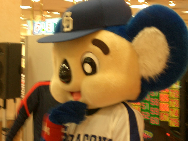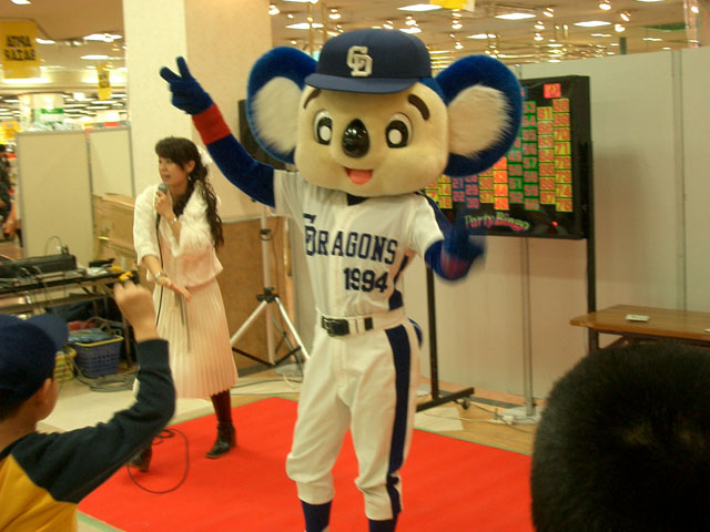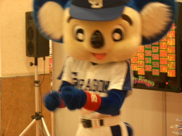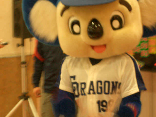 なんとか場をつなごうとするドアラ。ドムラ・・じゃなくて、ドラムのまね?