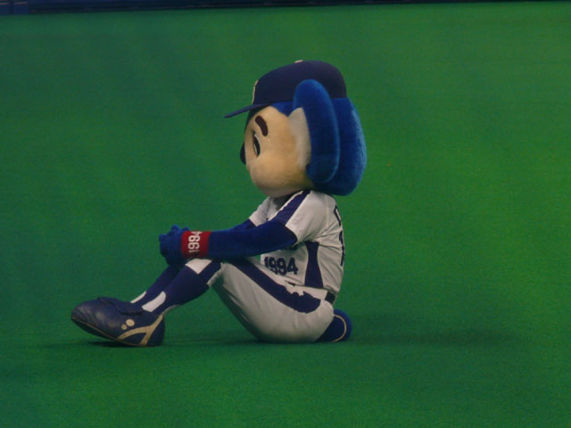 警備員さんのマネ~。 私は「体操座り」派です。 ぐるーっとグラウンド一周するパオロン。レフトスタンドに手を振っています。 ドアラも2・3周、スタンドを回ればいいのにな。 なんか一生懸命でないかい?やっぱりかわいいなぁパオロンは。 また起きたら?それとも夜?更新しまーす。