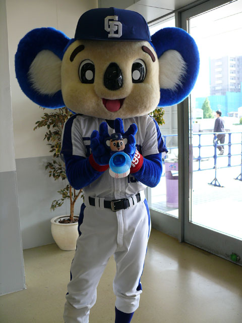 昨日はD-STAGEのためにグリーティングを犠牲にしたので、今日は何が何でもサインをもらわねば。 マーくん。私は1年ぶりの再会でした。 実は1年前はグリーティングの存在を知らず、たまたまその日のロッテ戦を開場から入っていて席でまったりしていたら、客席にマーくんとドアラが現れてくれて。慌てて写真撮りに行きました。 というわけで野球場で初めて一緒に写真撮影したのがマーくんとドアラでした。 COOLも凄い人気者。 今日、月曜日で平日なのに凄い人でした。あんなの初めてじゃないか?サラリーマンデーの携帯ストラップリール目当て?それとも石黒さんの公式ブログ効果? グリーティングでシャオロンとマトモに絡めなかった・・・。 まぁ、私はまたいつでも来れるしね。マーくんとCOOLのサインが貰え、ツーショットが撮れただけで満足。 なんとかパオロンに、今日つけているリボンとリーンちゃんのお守りを見せてもらいました。(そんでパオの全体像は・・・?? 本日の目的。ドアラメガホンを持ってもらうことw このあとドアラにメガホンでアタマ叩かれました。(←むしろ嬉しい この時点ではまだユニフォーム姿です。 とりあえずグリーティング一段落して、席にいこうと1ゲート前歩いていたら・・・。 ベースボールメイツの渡部さんと鎌田さんを発見!しかもお客さん誰もいない! おどおどと写真撮影とブログ掲載許可をいただく。ありがとうございます! アタシもね、本当はチアドラやメイツさんと絡んでみたいですよ。なるべく邪魔じゃないときに声かけたいな。 個人的にはこのブルーのユニフォームが好きです。 今日はりあちゃんと一月に一度の奮発、内野S観戦。ネットが程よくかかりづらいちょうどよい位置。 ハーイ登場でーす。 ボール拾いしてます。 とりあえず1塁側でドアラ来るのを待機してると・・・。 ボールが転がってきた・・・。 タイロンが来ちゃった・・・。 一時人がもの凄くやってきてパニック状態に。ひぃ。私はドアラが・・(ちょ シャオロンとスタメン発表。 グリーティングで絡めなかったぶんここでちょっとだけおしゃべり。 パオロンの全体像。たたずむだけでカワユス。 残念ながらドアラは1塁側にこなかった・・・。 チアドラ・Mスプとのダンス終了後、1塁側にやってきてドアラ、スーツ姿を自慢げに。 なんか合成みたいな・・・。 連行される青いコアラ。 昌さんと小笠原さんとタイロンの表彰がこの後行われる。 表彰の最中、ドアラの頭上を越えてマーくんとCOOL。 試合中、りあちゃんと野球談義もしくは応援していて、選手の写真が殆ど撮れてませんでした。ごめんなさい・・・。 りあちゃんとの野球談義がもの凄い盛り上がる盛り上がる!おもしろかったー! りあちゃん:「ロッテベンチに26番のユニかかってるよね」 んで、コースケさんがHR打って、普段だったらドアラとのハイタッチを写真に収めるのですが・・・コースケさんベースランニング早すぎて間に合わなかったorz その代わりに、応援団の声援に答えるコースケさん。この後お辞儀もしてくれました。西武戦でもHR打っているし、調子が戻ってきたようで嬉しい。 そして本日のヒーローインタビューは浅尾くんと谷繁さんバッテリーコンビ。シゲさんのヒーローインタビューを見た覚えがないので初めてなのかな。 笑顔ですシゲさん。 最終スコア撮り忘れた・・・orz とりあえず今日はこんなもんで。 4日連続は疲れるけれど、4連勝なので気分は充実。 西武戦で千葉からいらっしゃったおねーさん、いつも見てくれてありがとうございます。凄い嬉しかったです!(返信不要です こりんごさん結局見つけることできなくて残念。1ゲート凄い人だったからなぁ。ありゃ無理ですわ。 西武戦初戦サヨナラを一緒に観たゆかりん、また観ようじゃないか! 今日一緒に観戦したりあちゃん、マスコット追っかけにまた付き合ってくれてありがとうw 今度観るときはあらきが絶好調で復帰してることを祈ってるよ。 そんではしばらくネタは有り余っているので明日から更新がんばりますか・・・。