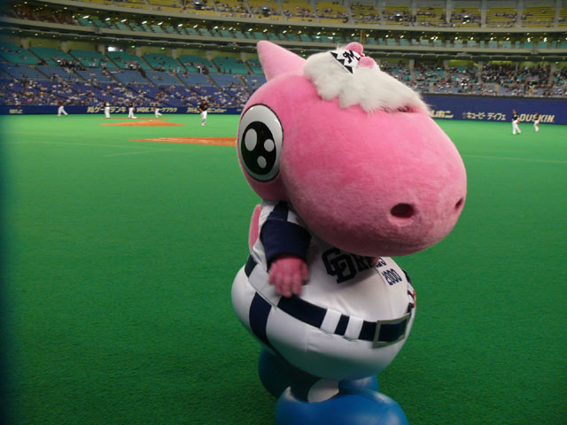 今年のナゴド観戦記録14勝7敗!一気に勝率伸ばせました。 日ハム戦・西武戦・ロッテ戦・・・ネタがたくさんありすぎて何から乗せればと混乱しております。どうしよう。 とりあえずしばらくナゴドでの試合ないから、私の時間があればできる限り更新しますが・・・できるかしらん。 でも残念ながら今日は動画はほとんど撮れてないです。 というか今日の写真をどれを載せようかって感じなんですが・・・どうしましょ。 まぁ気楽に付き合ってくれると嬉しいです。 とりあえずかわいさとキモカワイさをアピール。