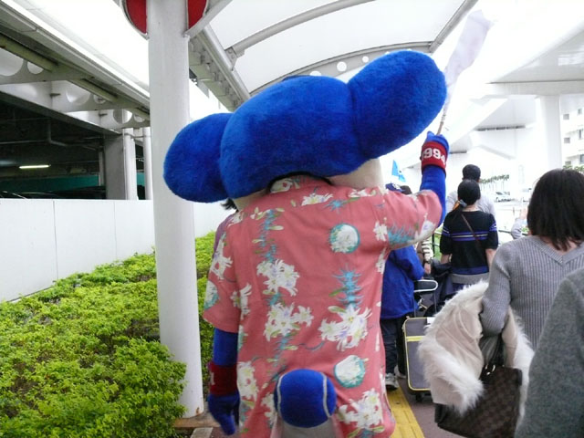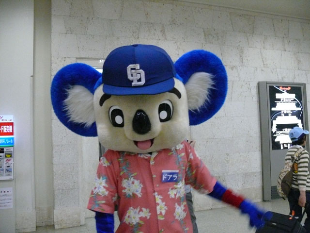 沖縄着。那覇空港でアロハ着た青いコアラという珍獣を発見。