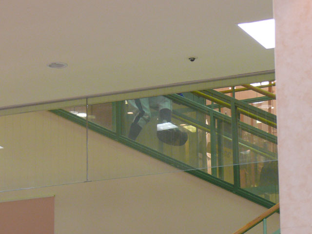 手すりに乗って滑り降りてきましたよ!良い子はマネしちゃいけません。あれはドアラだからできるの(え?