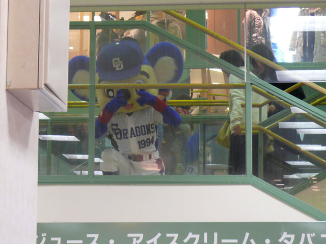 人ごみの中にダイブまがいに降りてきて(!)、慌ててやってくるドアラ。