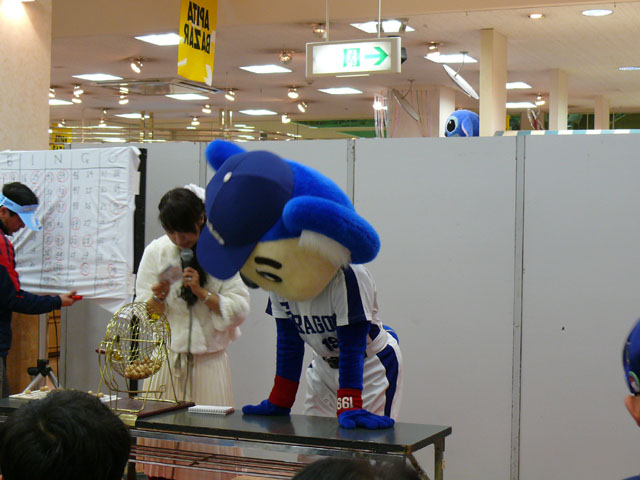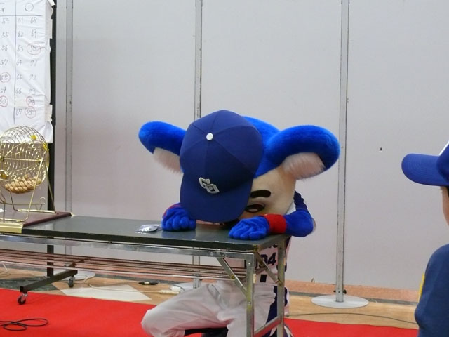 ビンゴで当たった人が商品を選んでる最中はドアラが場つなぎですよ。