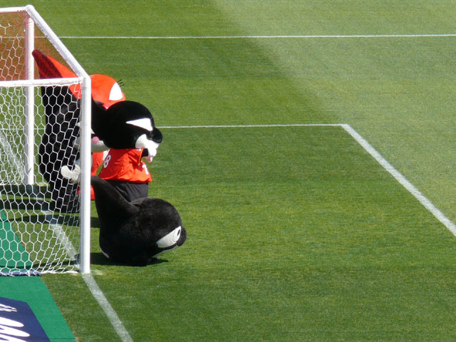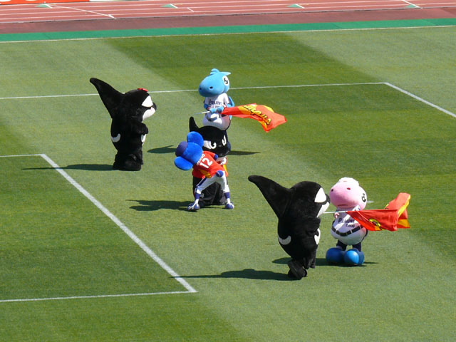 「ド」の靴では蹴りにくかったかな~ドアラ グランパスJr.の目が怖い…ドアラやシャオパオのつぶらな瞳を見慣れているせいか…(>_<) てかシャチが立っていること事態「なんかヘン」って思ってしまう私…