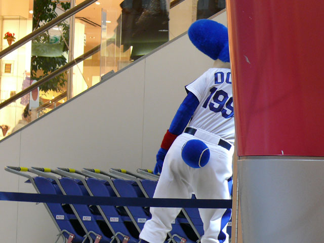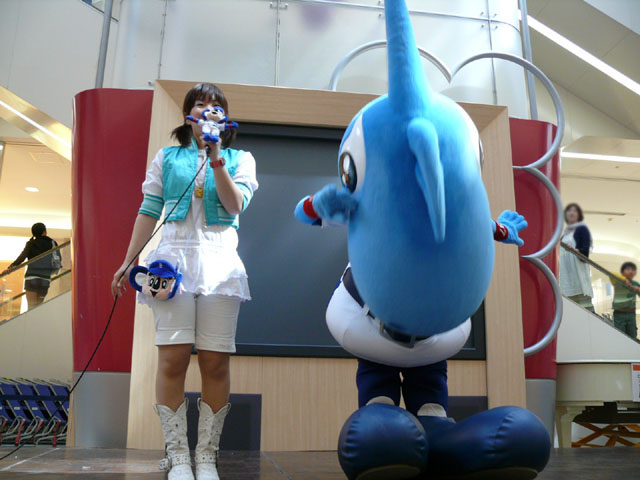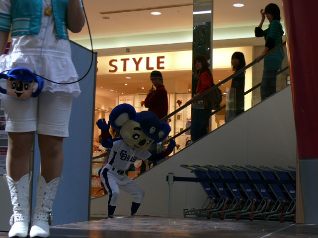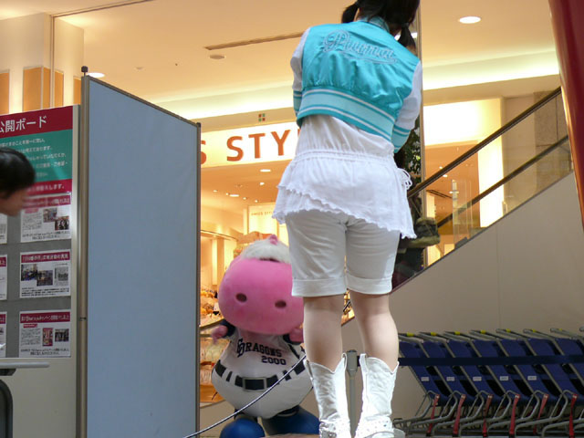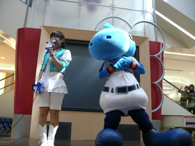 カートをかたづけます。非常に丸いドアラのしっぽ。 「内緒よ」って無理。 司会は最近の活躍がひかるルミおねーさん。プーマのジャケットがかわいい。 真っ先に呼ばれてシャオロン登場。 大きな顔で丁寧にご挨拶。 シャオロンも楽しみでワクワク。 では続いてパオロンを呼びましょう。 って、アナタ誰ですか。 そうそうパオロンはこっちさ。