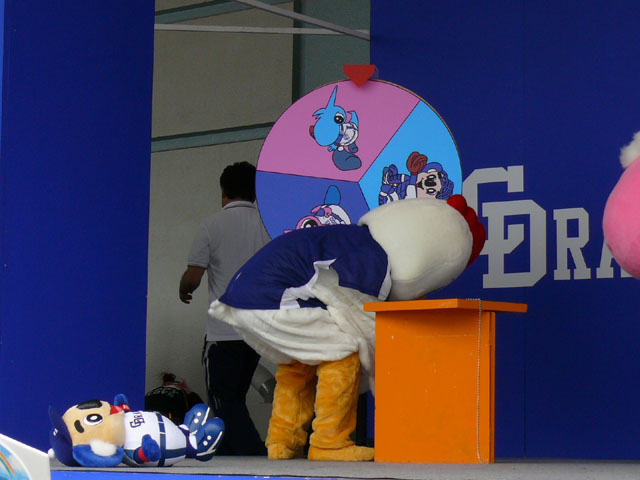 なんかビックイニングがあったみたいですが横浜側に・・・ドラにもビックイニングこないか。 今回ハマスタには行ってません。遠征行こうという気になるのはよほどじゃないとならないねぇ。札幌と千葉だけしか行ったことがない。どっちもセじゃないじゃないか。 今度遠征行くんならマスコット交流関係なしに、レフドラ楽しみにいきたい。札幌のレフドラ(ライトがビジターだからライドラ?)は楽しかったしね。 日本代表のほう見てるんですけど、ダルビッシュ投手の足の長さは日本人に見えない。いやダルさんはハーフなんですが。 ドアラ人形に不服申し立て。逆さづり。