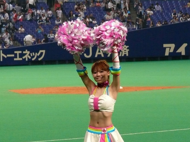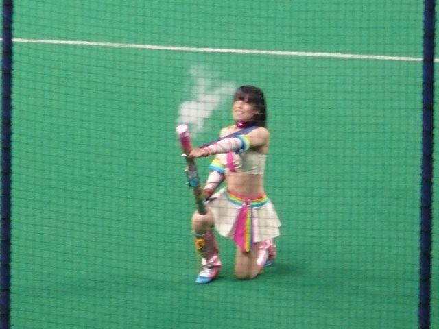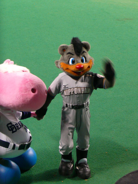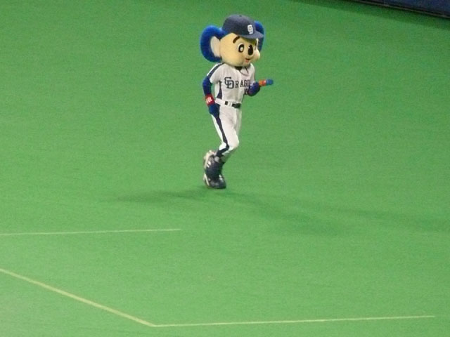 なんとB様バズーカボールをぶちまけた!多分二塁審名幸さんも見てる。 やばいです一つ残らず片付けましょう。 自力で投げ込んでしまえ。 本来はこのように打ち込むものですが(ピンボケごめんなさいなつ) ハマスタで毎度場外に飛ばしてしまうのはこのお方。 何故法被を着ているのでしょうか。 この日もありがたいことに勝ちました。 勝ちドラあいかちゃん。絶対かわいくなったよリーダー。 明日にはおっきなおさかなにのるの? なんかくれといってきてます。アナタはパオロンですか。 ダメだ、怪しすぎる・・・。 B☆B、また名古屋に来てください!そして週末、パオロンをよろしく!