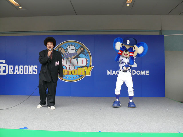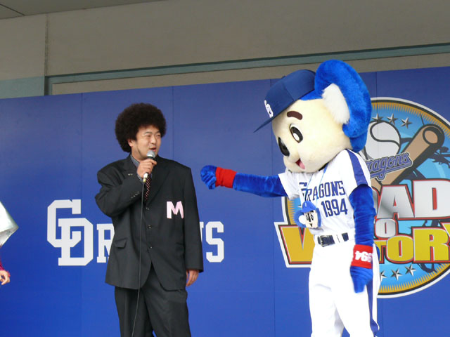 さりげに?ドアラポーチアピール。 ジントシオさんとチアドラのなおちゃんの司会でお送りします。 嬉しそうですな。 あぁ、ドアラ・・・。 「ドアラはいつもこうなんですか?」とか言われてましたw ちょっと疲れちゃったんで今日はここまでで失礼します。 続きはまた後日。
