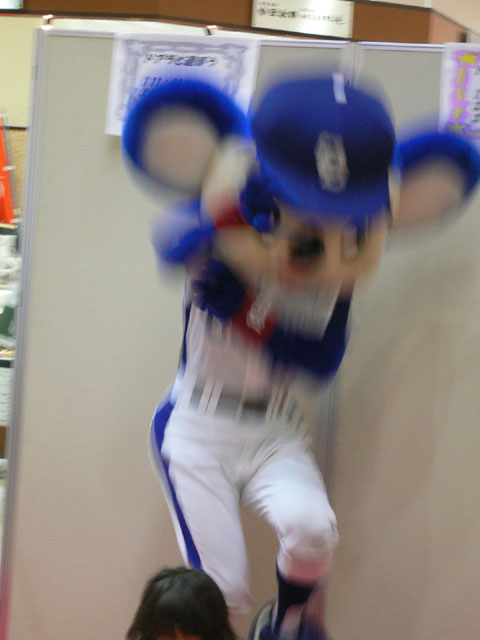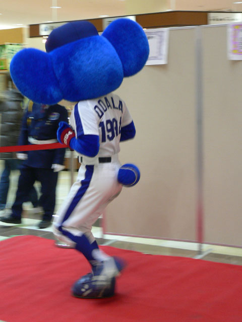 参加した3人全員に、ドアラのサインボールがプレゼントされていました。いいなぁ・・・<まだ言うか そして次はドアラの出番。ハンデつけてドアラは10秒。 また縦撮影してしまったよorz そして人の頭が写りこんでしまってます。スミマセン。(注:音が出ます)