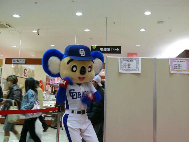 何故か警備員さんにお話に行くドアラ。な、仲良し!?(私の中でかなりツボだった)