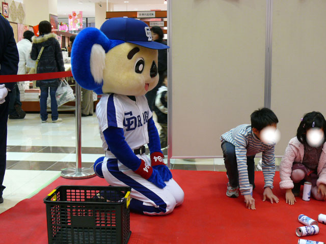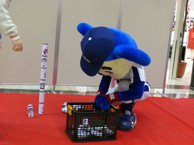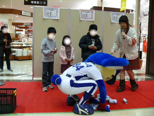 続いてはお待ちかね(?)ドアラと缶積み競争ですよ。