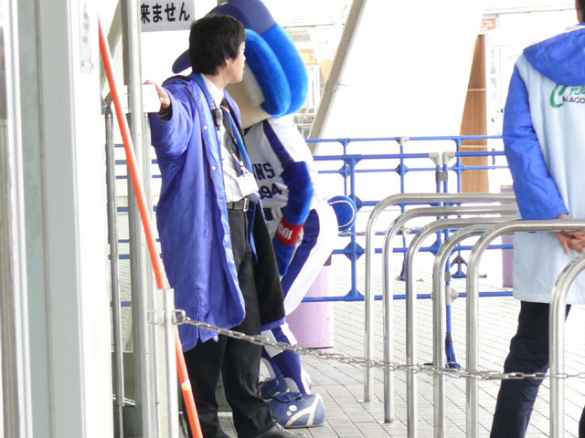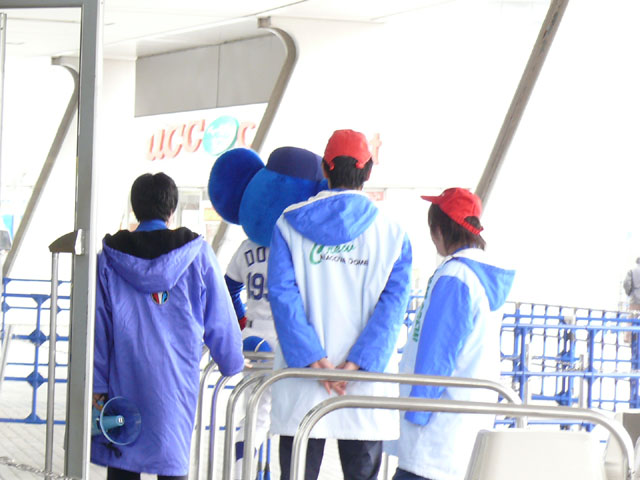 3/8のオープン戦の、パオロン中心にいってみましょう。ドアラもいるよ。 開場前に1ゲートの前でお客さんを待っていてくれています。