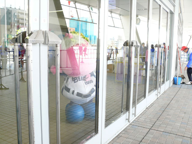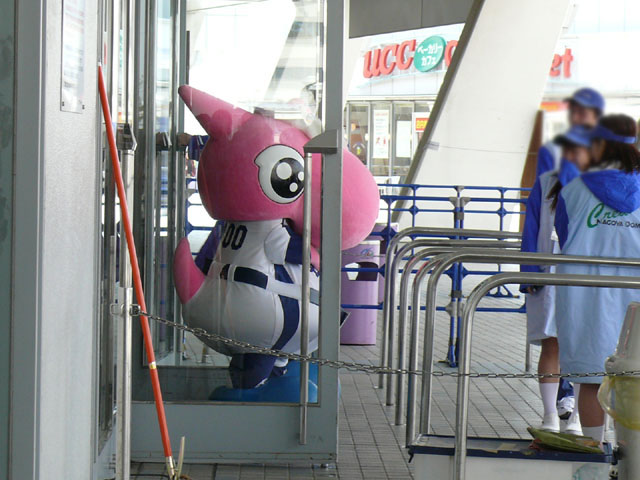 相変わらずパオロンは可愛いです。 私が観戦したオープン戦でも開場前にドアのガラスに鼻を押し付けて 子供たち(もちろん大の大人も)を喜ばしてくれました。 また動画を携帯にDLさせてもらいました。