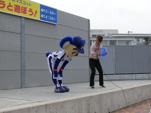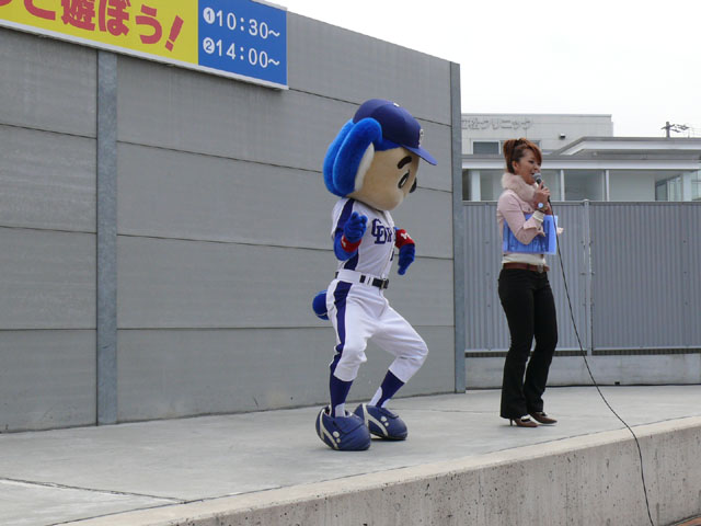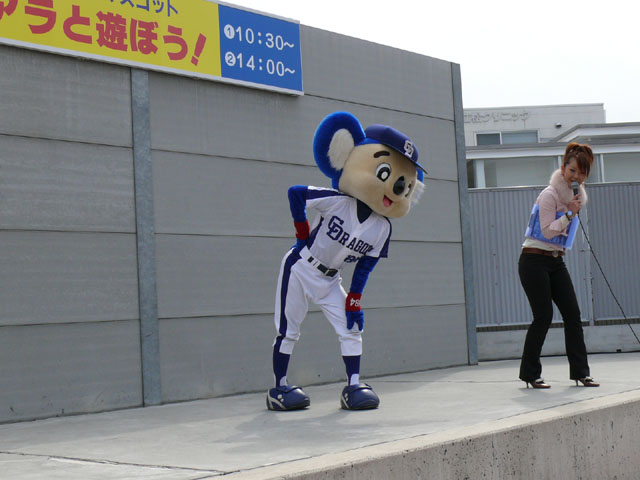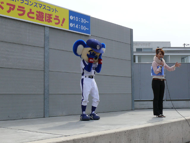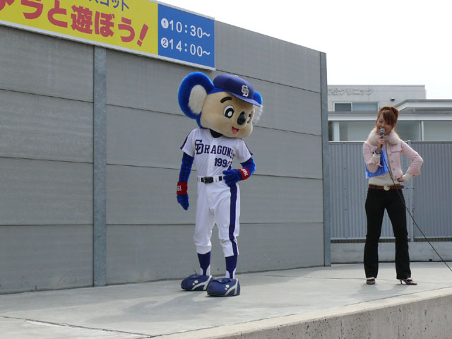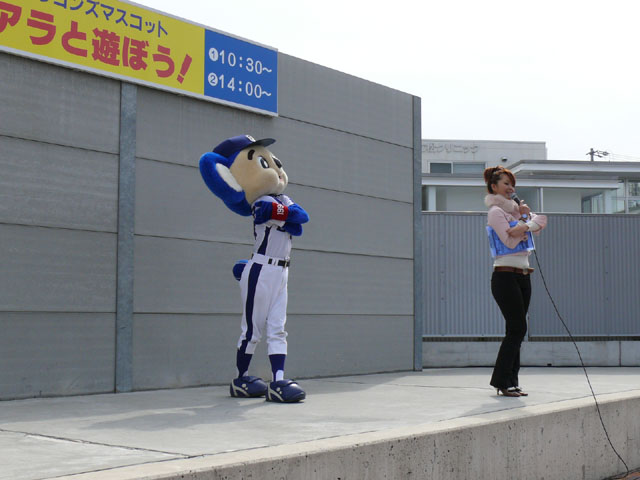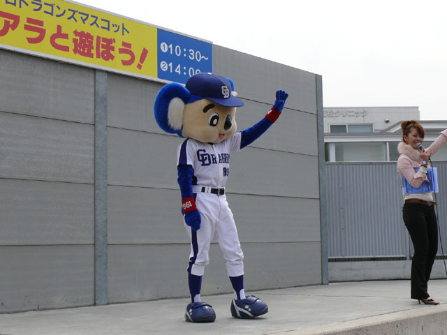 私は基本的に司会のおねーさんの目線を追います。 それでも危ういんですけどね。 しかも登場シーンも、バク転でくるのか、おふざけで来るのかわからないので緊張しますね。 天候はころころと変わりましたね。昨日今日みたいにずっと寒いわけではなく、日があるときは暖かかったのが救いかな。 「みんなでまねまねドアラ」、おもしろいですよね。ドアラの妙なポーズのレパートリーがよくわかる・・・w
