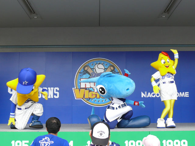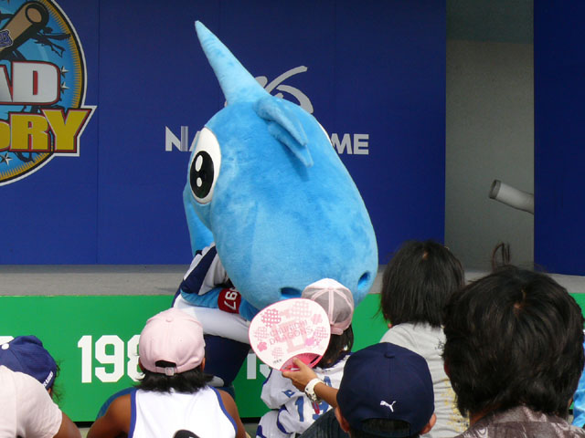 「どれだけお客さんいるの?」とこっそり覗くホッシー。ホッシーの登場にお客さんも色めき立ちます。