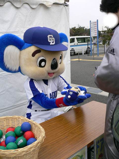 んで、ドアラキューピーの話なんですが。 ちょっと迷いましたが、ドアラキューピーの売り上げが上がることによって、もっと量産してくれるならそのほうがもちろんいいし、ドラゴンズショップでの取り扱いも始まってほしいと思うので、こちらで紹介します。ミクシにも情報出てるしね。 このドアラキューピーは今の段階では取り扱っている会社が1つだけのはずです。 株式会社ジェイナス お問合せ先はhttp://www.jnas.jp/aboutus.php にある電話番号です。 肝心のドアラキューピーの入手方法ですが。