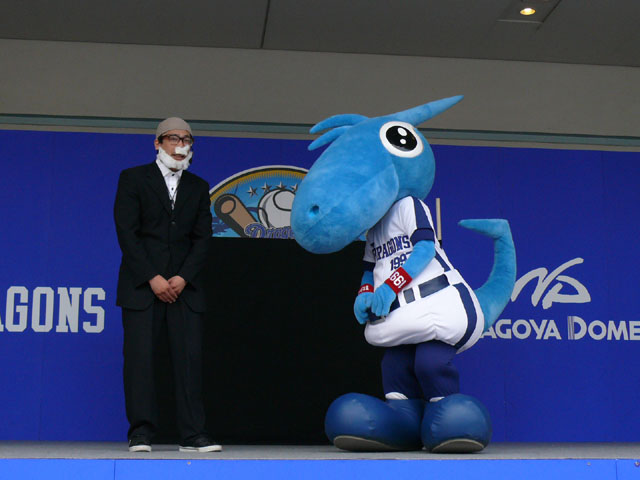 ドラゴンズのメインマスコット、シャオロン。 ドラゴンズのマスコットはドアラが強烈すぎなんですが、シャオロンもかなりキャラ強い。もちろんパオロンもですが。