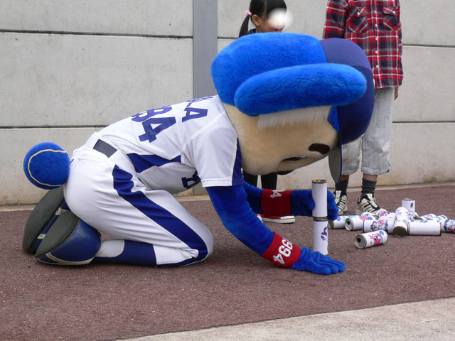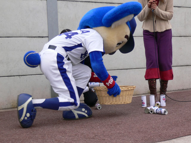 空き缶積み対決ですね。空き缶1つ1つにちゃんとドアラシャオパオのイラストが印刷された紙が巻かれていて、小技に凝っています。