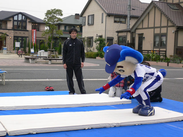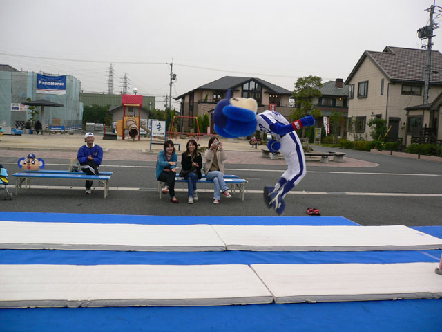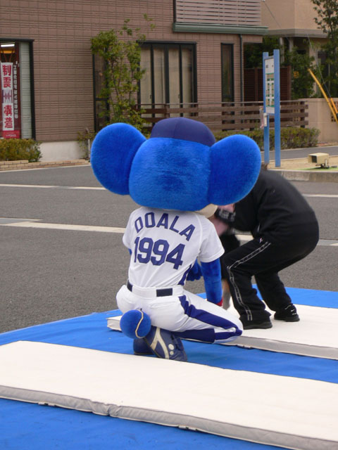体操のおにーさんに「ドアラの得意なバク転を見せてもらいましょう!」って