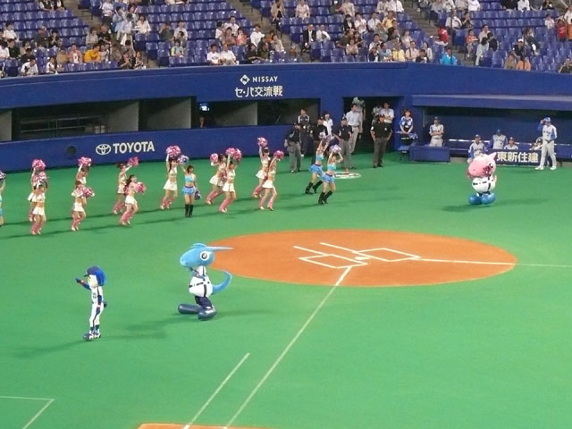 今日地元でゆかりんが運転しているのを見かけた気がする。<どうでもいい。 レオが「オレの見せ所だな」といわんばかりに出てきました。 6/8西武戦試合前。動画もあります。