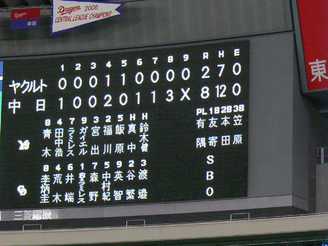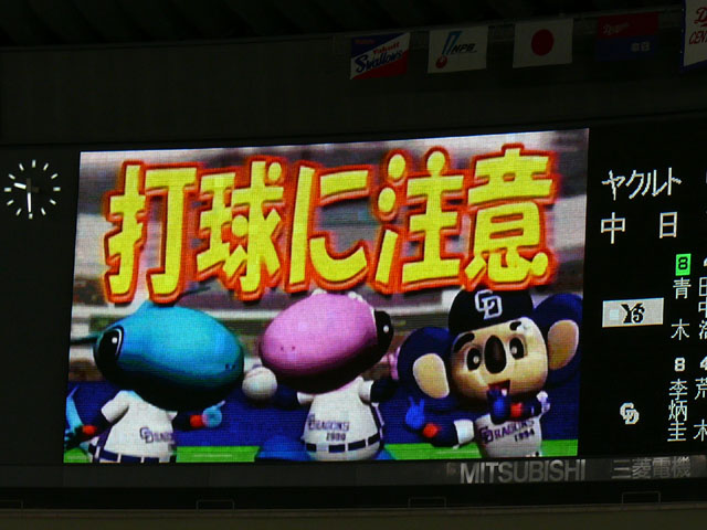 ナゴド観戦16勝12敗。そういや今日が前半戦終了だったんだっけ。首位ターンめでたし。 そうえもん殿が来るとわかった瞬間チケット買いに走ってました。珍しく内野A席。内野Aの中では多分最前列っぽい良席万歳。でも5回のときそうえもん殿は3塁側行ってた・・・。 明日からしばらく試合がないので、今日の更新もさくっといきます。 コメント返しは・・・申し訳ありません明日でorz 今日はしかしなんといっても・・これかもしれない。
