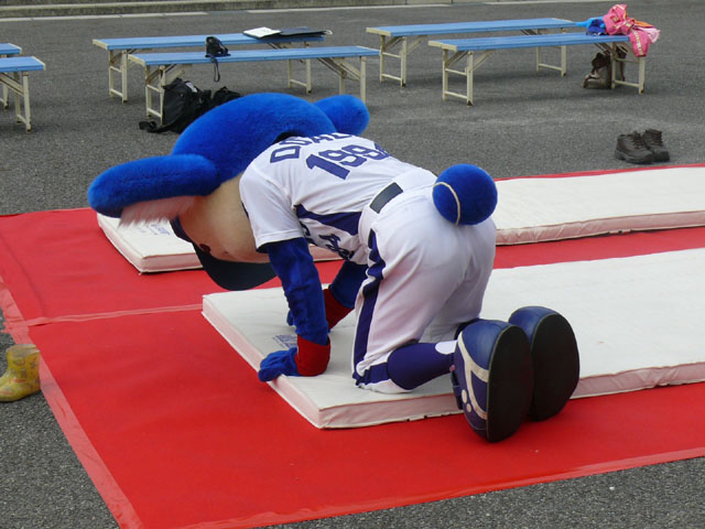 何昨日の巨人と同じようなことやってんだよ・・・orz さて、気をとりなおして。「ドアラ流準備体操」をごらんください。 参加していたお子さんたちはぽかーんとしていましたw ドアラ:「ちゃんとオレのマネしろよー!」 (最近1日に何回か更新してます。よかったら確認してくださいね)