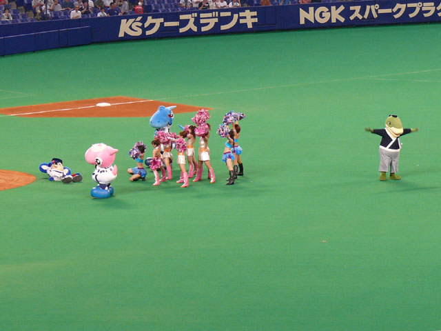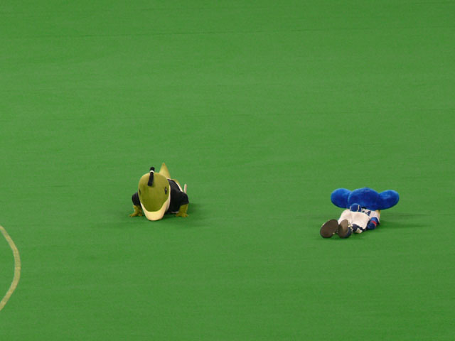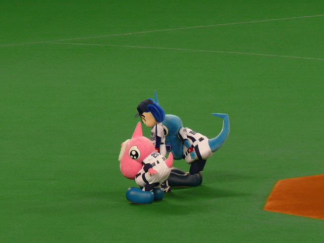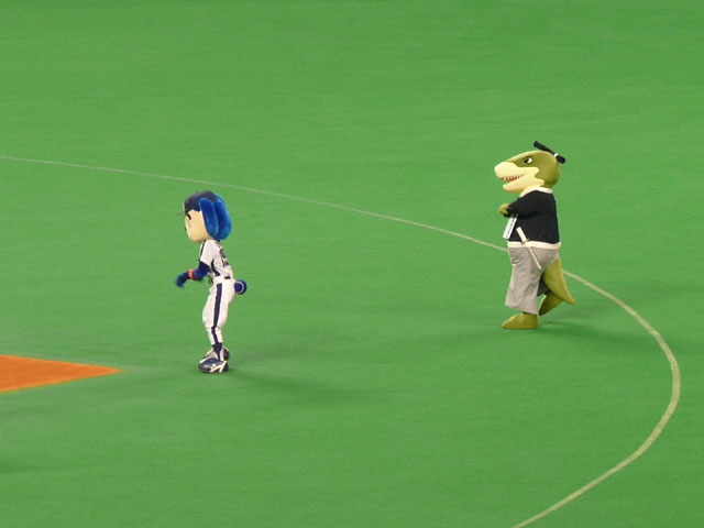 一礼。ドアラはハーキュリーポーズしてませんでした。たしか。 あれ?そっちでバク転? バク転じゃないし! 拡大。 なにこのFREEDOM。 日○食品はこの2人をカップヌードルのCMに使えばいいよ。 そうえもん殿、立ち上がる。 恐竜というより、トカゲじゃね? んでもうダンス始まってますから! あぁ2人の絡みが見たい。 高っ! あれ、ゆうちゃんじゃなくて可児さんとコンビだ。 さすがに燃えドラのように簡単には踊れないですよね。 締めがこんなんて。 みきさんをナンパするそうえもん殿。 手も足も指は3本です。 あぁ、ドアラとそうえもん殿の絡みを是非見たいんです・・・ドアラお願いします。