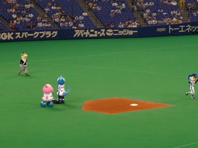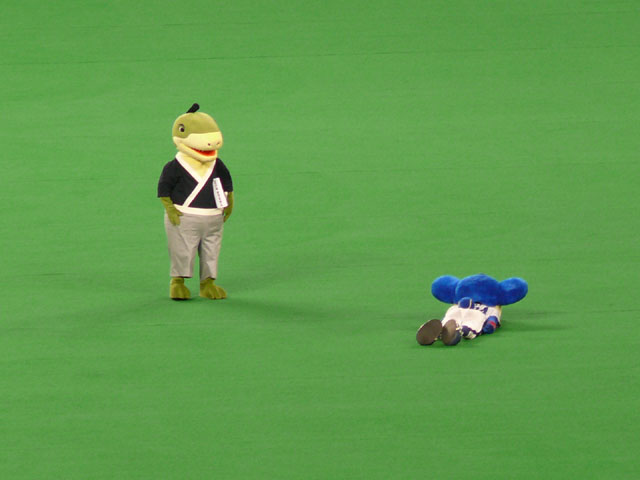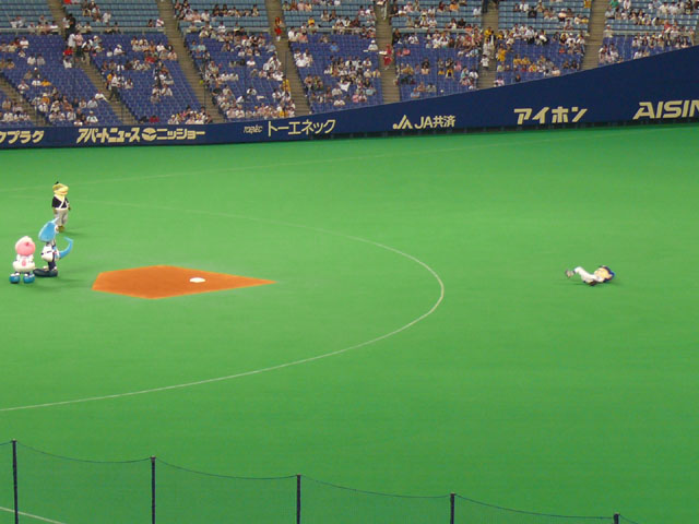 18日になる前にこの前のそうえもん殿シリーズは終わらせたい。<交流戦ドウスンデスカ。 ダンスショータイム。 7/6阪神戦。ドアラとだいな そうえもん殿だらけ。