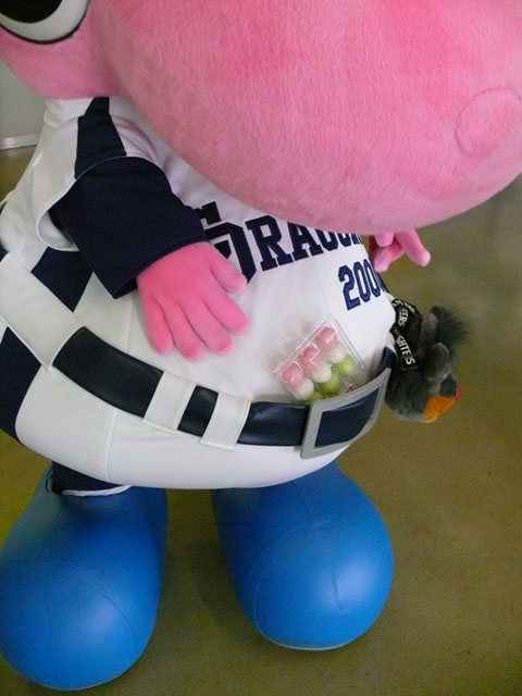 ドアラさん、エヴァンゲリオンじゃなくてドラゴンボールなら勝てるそうです(お絵かき)。 おだんごさしいれ~。 B様ポシェットつけてます。 1ゲートグリーティングでチアドラなつとあやなちゃん。 B様写真集、B・B RUN、絶賛発売中~! なんなのさ~! B様、ドラマスコットがいなくなっても一人でグリーティングがんばってます。45分間も・・・ナゴドでそれは凄すぎる。 やっぱりB☆Bはイケメンマスコットだ。
