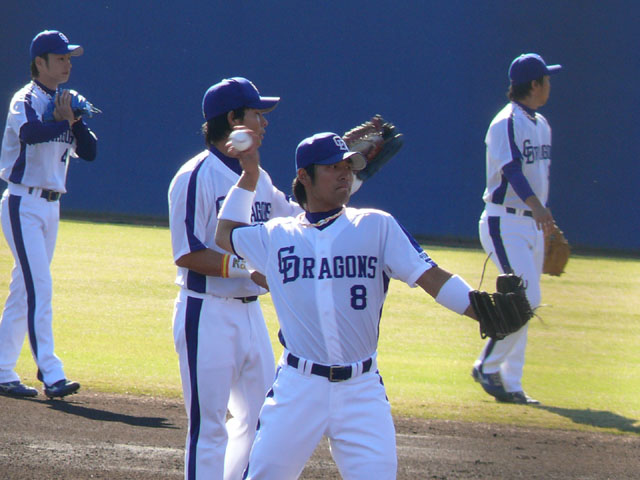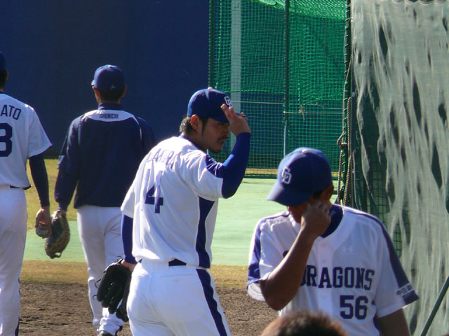 午前10時過ぎに球場到着。さすがに平日、お客さんおらん。それでも1塁側は既に満員で無理ですが、バックネット裏キープ。 まだ選手は外野のほうでアップ中。 で、暑かったですわ。暖かいかなと思ったら通り越して暑かった。日焼けしてしまった・・・。 ナベさん、コーチになりました。暫定か決定かわからないけれど77つけてました。 オーバーホールじゃないんですね。 人気No.1になってしまった。 というわけでどしょっぱつから浅尾くん。 ケンタ・・・久しぶり。 もっと久しぶりなスーさん。 最もお久しぶり~なひさもっさん。来季はナゴドのマウンドでお目にかかりたいです。是非。 野手集結。 堂上兄弟。 ふとした瞬間似てる。 川相さん来年もよろしく。 岩崎くん笑っとります。まだ余裕。 ケンタさんその髭は・・・。 平田くんがんばれ。 本日の締めはこちらで。 400枚ほど撮影してきました。ちまちまと公開していきます。 しかしこのペースだとレポ終わりのへんは春キャンプが始まってたりして・・・。