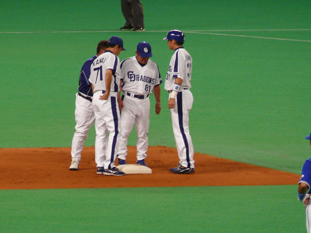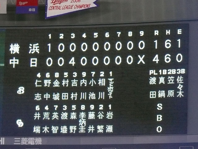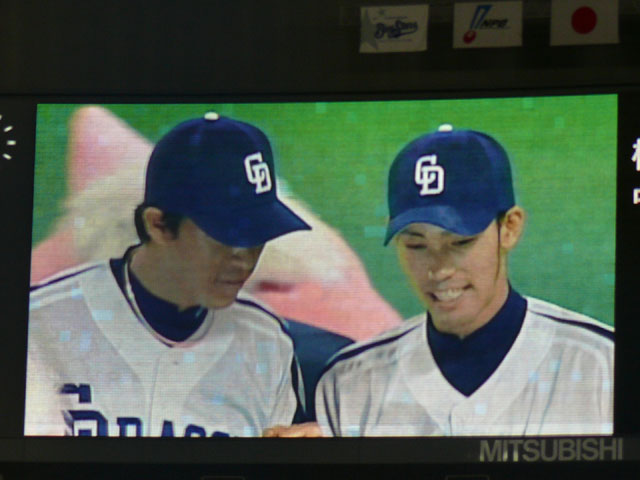 パオさん増えてますぜ。 ライト前行かなきゃ。 スタメンちょこっといじってきました。 そのポーズとその足の向きは謎。 あらきさんのバースデーです。 今日は憲伸。気合入れていきまっす。 もりのん、足大丈夫・・・? 久しぶりのスタメンですな。チャンスに打てるのは嬉しい。走塁ミスはちょっといただけなかったが、まぁよい。 初回1点取られたときは、今のドラ打線では厳しい・・と思ったのですが。勝ちました。 各年に「先攻逃げ切りの竜」「逆転の竜」とかありましたが、今年はなんだろうと昨日考え込んでしまった。先制点とっても逆転される気がするし点先にとられたらそのまま終わってしまう気がするし。どこまでもネガ。 だが、わかった。 「ワンチャンスをモノにする竜」 だな。スワ戦もそうだったし。兎に角集中打が出てくれれば、勝てそうだ。 ヒーローインタビューはビョンさんと藤井くん。パオさん大喜びでした。 さて、しばらくナゴドがないからな・・・どこまでいろいろ溜まっているネタ吐き出せることやら。 絶対勝つぞ、ドラゴンズ!