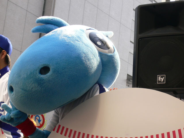 ドアラ、手を広げて「ようこそ~」って感じやね。