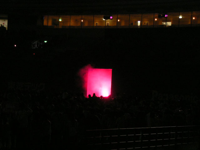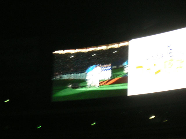 水木一郎さんが出てきた。生歌だ。ビジョンに映し出される選手もポカーンとしてたような。せめて口パクでもどうぞ。