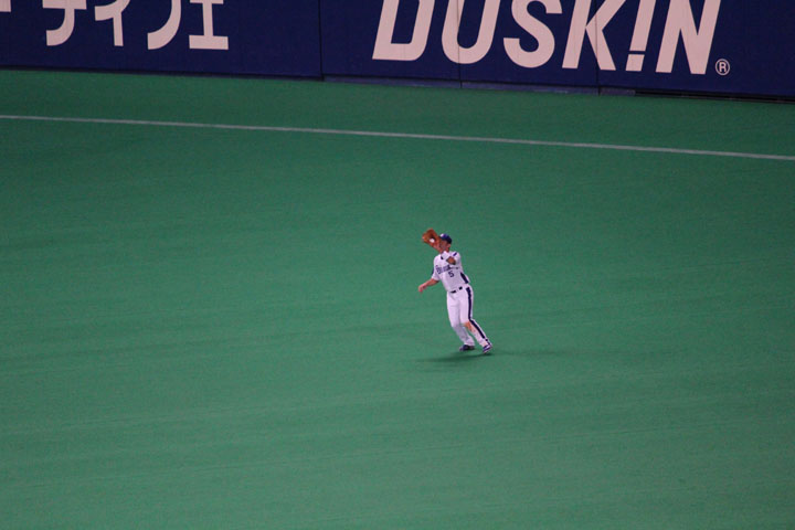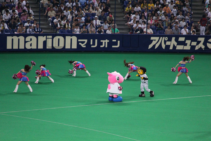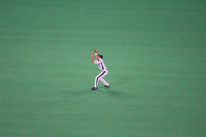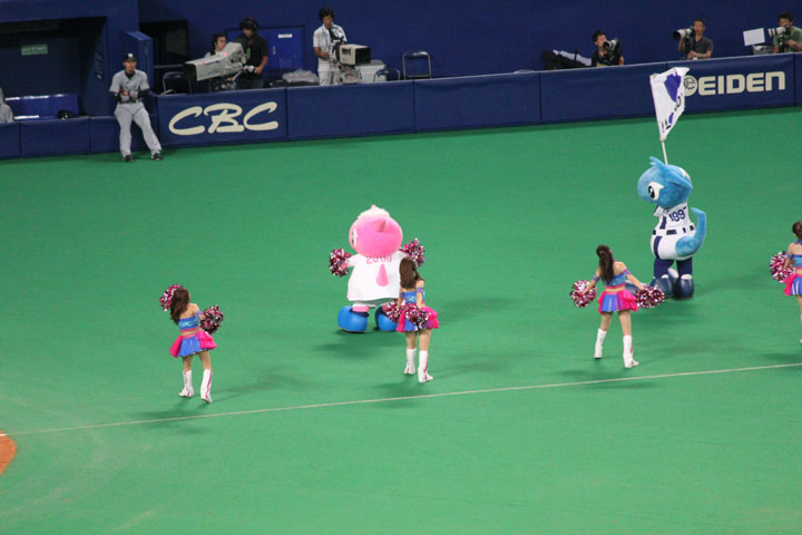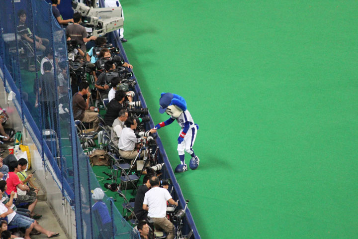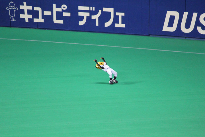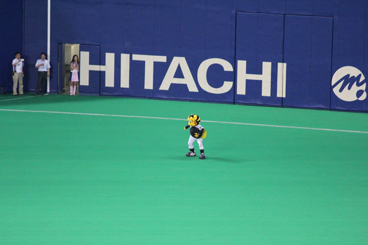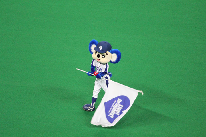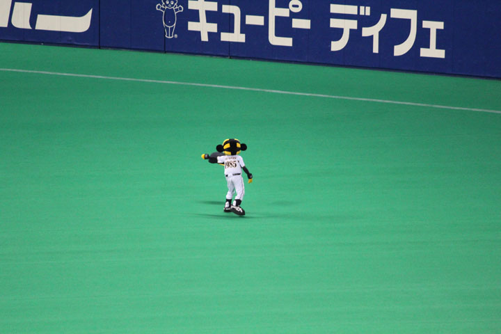 何気に腕に日焼けの跡がうかがい知れる。 ショートフライキャッチの瞬間。 大入袋を渡している瞬間。 トラッキーの動きをじっと見ているパオロン。パオロン踊らずに見ていた。よっぽど奇妙だったのか? レフトフライキャッチの瞬間。 進塁打の瞬間・・・。 帽子を投げるときは何かしらの合図。 アクロバット虎。 ネコ科ですもん。 有袋類は旗を振る。 竜の子は旗振ったり踊ったり。