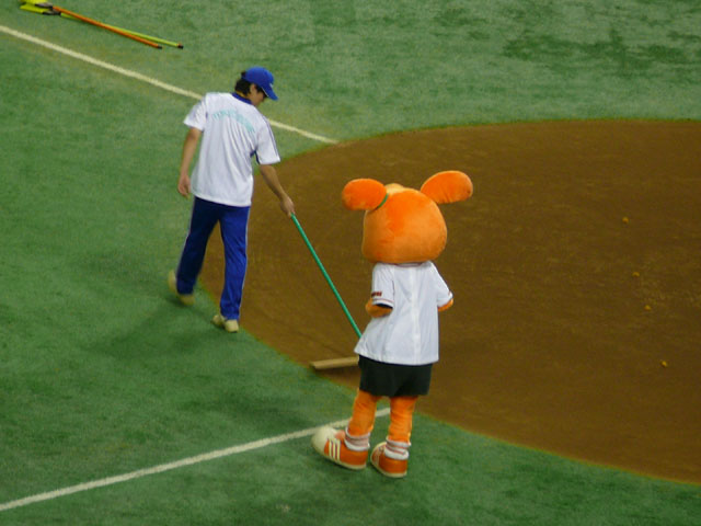 憲伸はFAどうすんのかな・・・やはり前々からメジャーに行きたいと言っていたのでそれが憲伸の夢なら応援できそう。国内移籍はやだなー。 しつこく、もりのん。 相変わらずかわいいっすね浅尾くん。 凄いピント合っちゃった瞬間のガサーラ。 そしてマサさん。 来季は外野の枠が1つ空くのでチャンスですよ。 Sちゃんと一緒にバッティング練習張り付いている間に実はコンコースのどっかでマスコットイベントが行われていたらしいです。知らんかった。やっぱり知らない球場の勝手はわからんね。 ということでジャビットたちと直接触れ合えるチャンスはなく・・・。 登場ー!キッズジャビットのチャピーちゃん。 初めて生で見ましたが(遠いけど)かわええのう。 帽子かぶった333ジャビィ。 でも背中はGIABBIT。 お手伝いしましょか? というわけで次の更新はウサギさん一家。